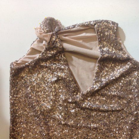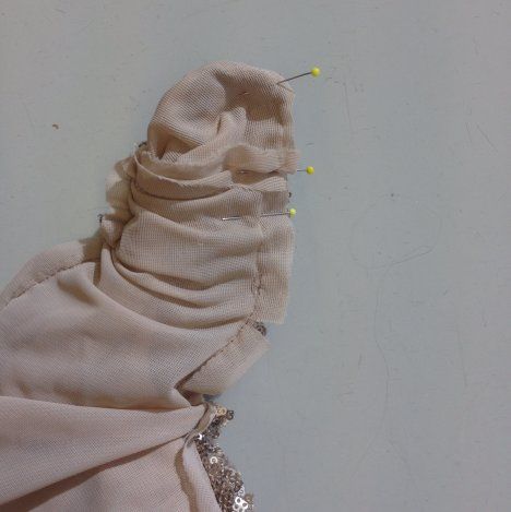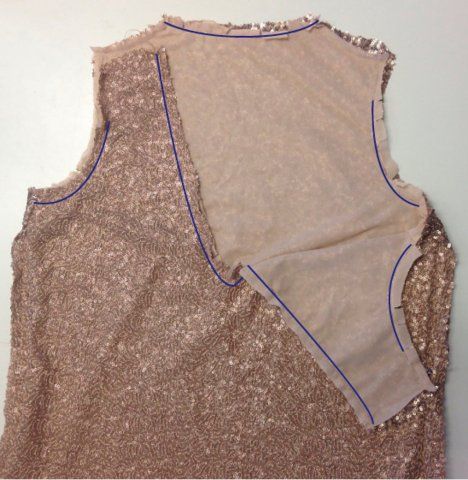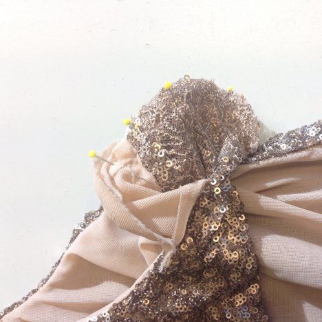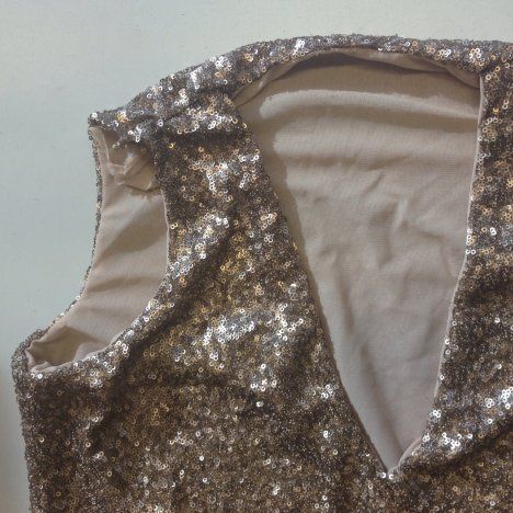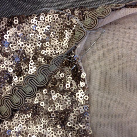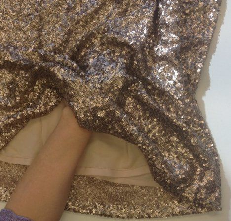 4. Ompele paljettikankaan helmapäärme käsin ja vuorin päärme koneella.