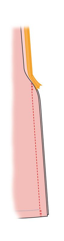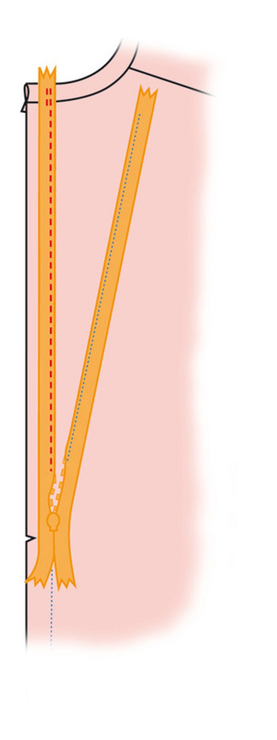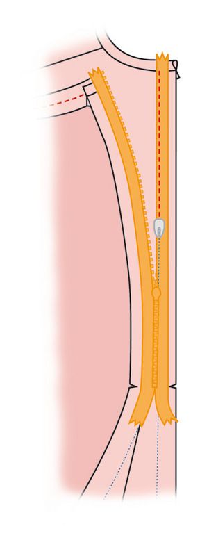 Ompele sauma vetoketjun alapuolelta.