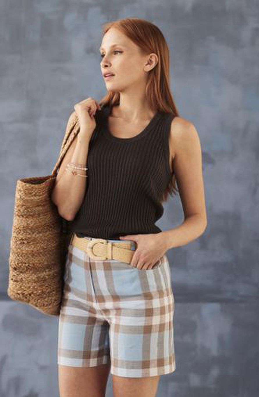 5. Ompele vyötärökaitale valmiiksi. Taita sen jälkeen vyölenkkien avoimien päiden saumanvarat nurjalle ja tikkaa päät vyötärökaitaleen yläreunaan. Lenkkeihin saa jäädä hieman väljyyttä, jotta vyö sujahtaa niihin hyvin.