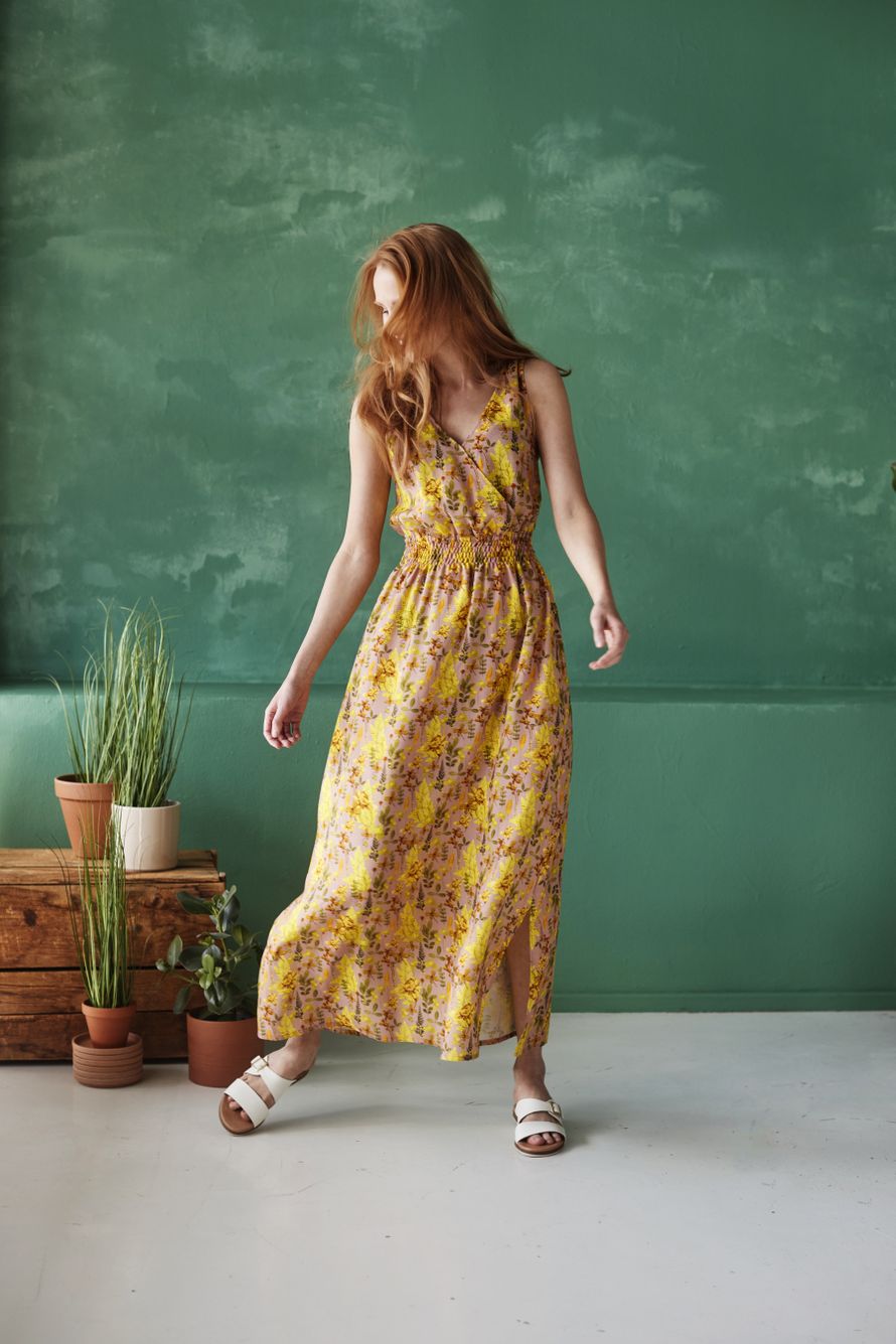 5. Kuvan mekossa poimulankojen väli on 1,5 senttiä. Voit tikata niitä tiheämminkin, jolloin ryppypinnasta tulee tiiviimpää. Kangas myös vetäytyy leveyssuunnassa kasaan sitä enemmän, mitä useampia ompeleita on päällekkäin.