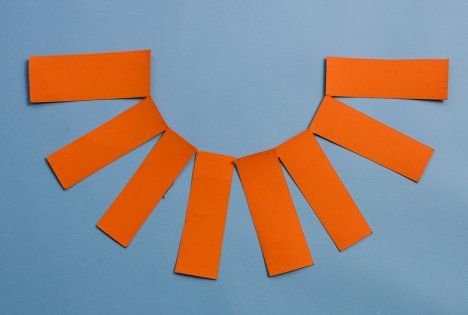 Leikkaa suorakaiteeseen aukileikkauksia tasaisin välein ja levitä se puoliympyrän muotoon. Jos haluat vähemmän kellotusta, levitä suorakaidetta vähemmän alareunasta.