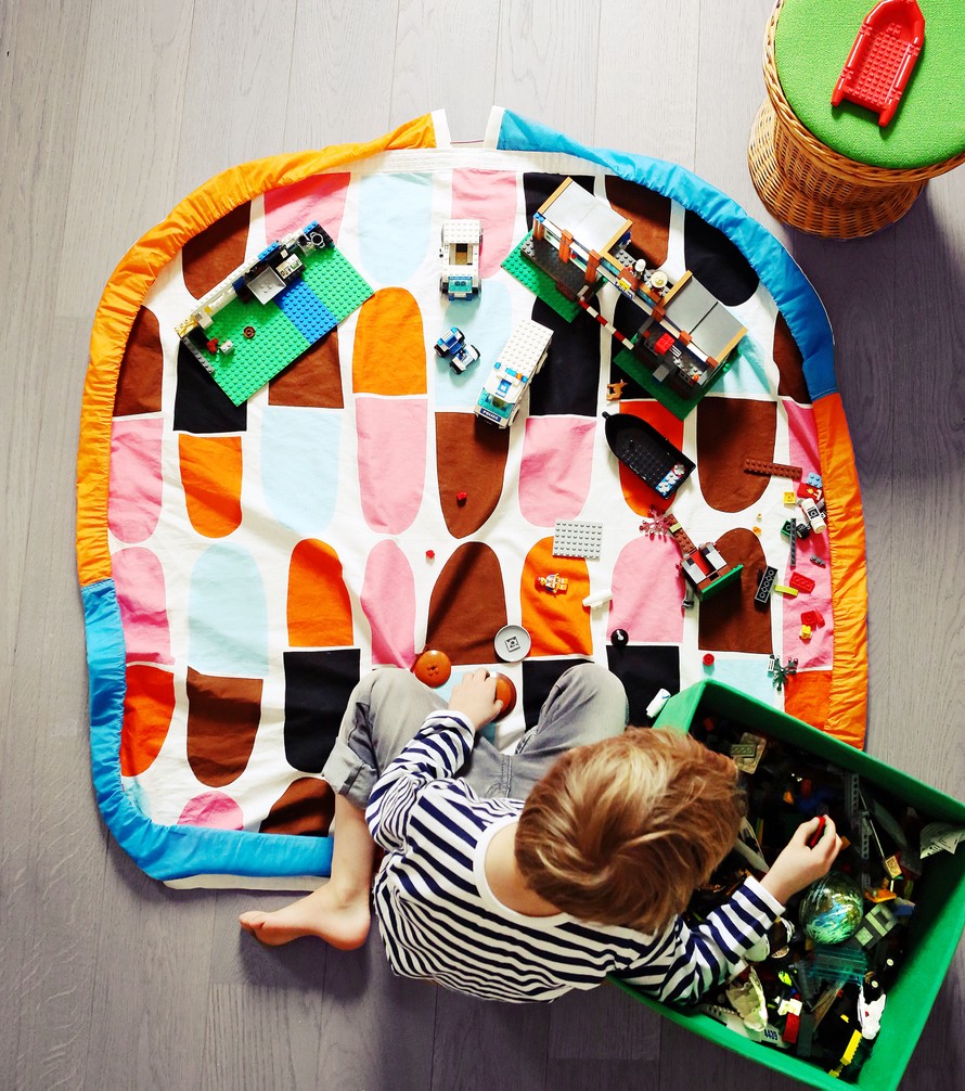 Legoista tykkäävät isot ja pienet, mutta niiden kerääminen imuroinnin tieltä on painajaismaista. Tee palikoille leikkialusta, joka muuttuu helposti säilytyspussiksi.