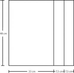 Valmistelut: Piirrä kassin kaava 48x48 cm. Jaa se oikeassa reunassa pystylinjalla, jonka leveys on 15 cm = tilkkuosan leveys. Jaa se vielä keskeltä halki.