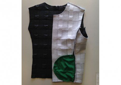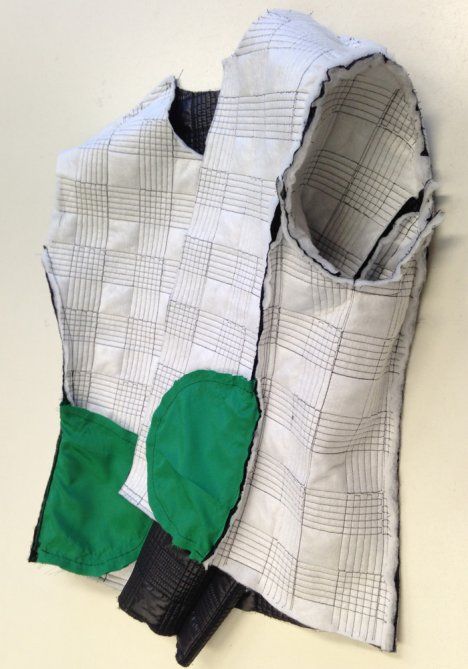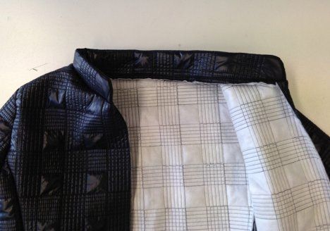16. Ompele vuori pääntielle. Tee saumanvaraan aukileikkauksia ja käännä takki oikein päin.