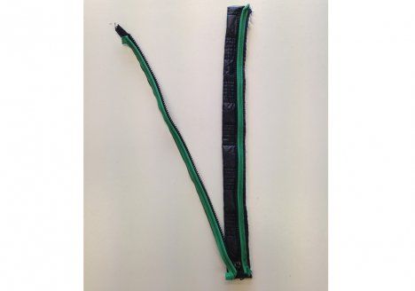 10. Ompele tereet vetoketjun reunoille hammastuksen viereen oikealle puolelle (tarkista, että vetoketju sulkeutuu vaivattomasti). Käytä vetoketjupaininjalkaa. Jätä terettä pari senttiä vetoketjun päiden yli.