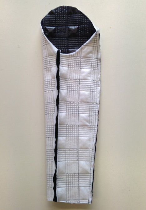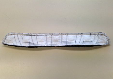 11. Taita vetoketjun suojakaitale pituussuuntaan kaksin kerroin oikeat vastakkain ja ompele lyhyet päät. Käännä kaitale oikein päin.