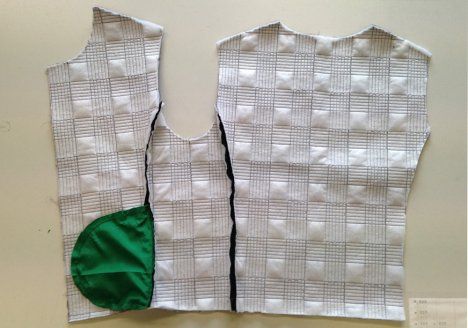 4. Ompele etukappale ja etusivukappale yhteen taskuaukon ylä- ja alapuolelta. Ompele sivukappaleet takakappaleeseen.