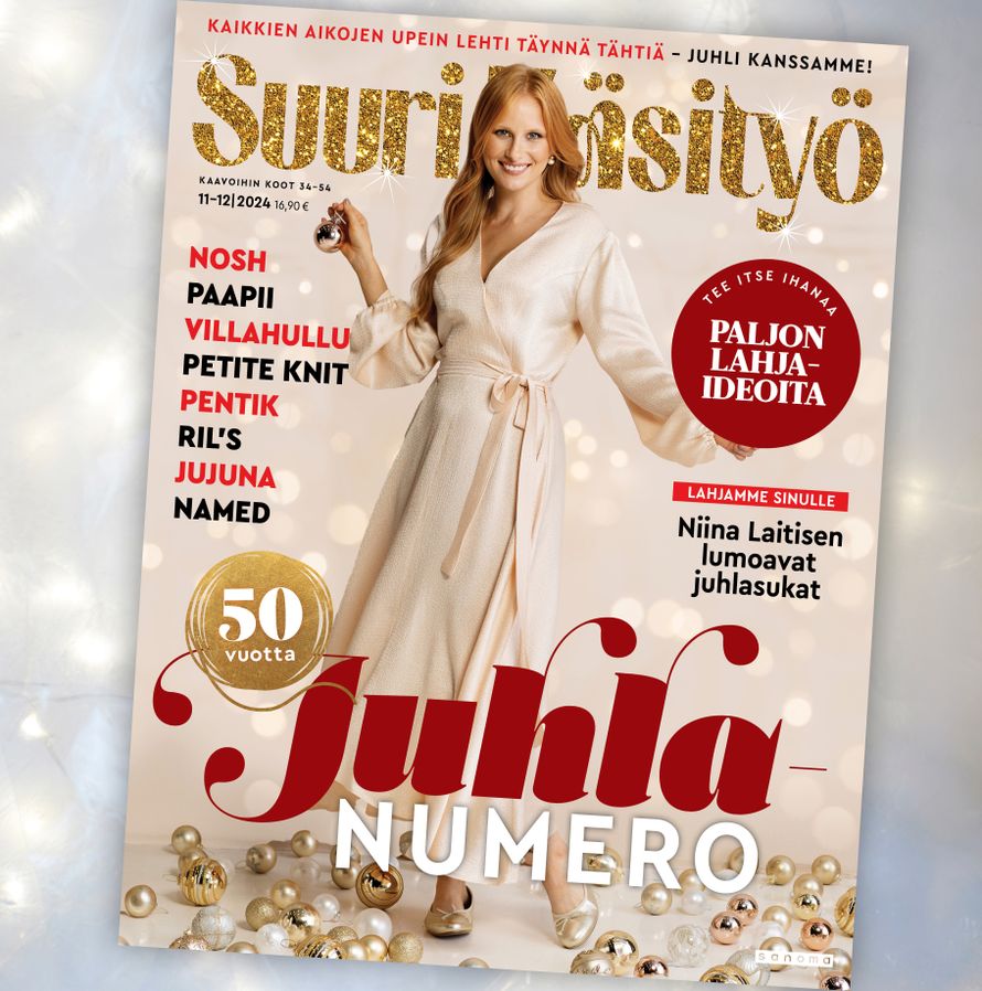 Suuri Käsityö täyttää 50 vuotta, ja juhlimme sitä tavallista suuremmalla muotijutulla, joka tarjoaa toivekaavoja, mukavia kotoiluasuja ja tyrmäävän ihania juhlavaatteita.