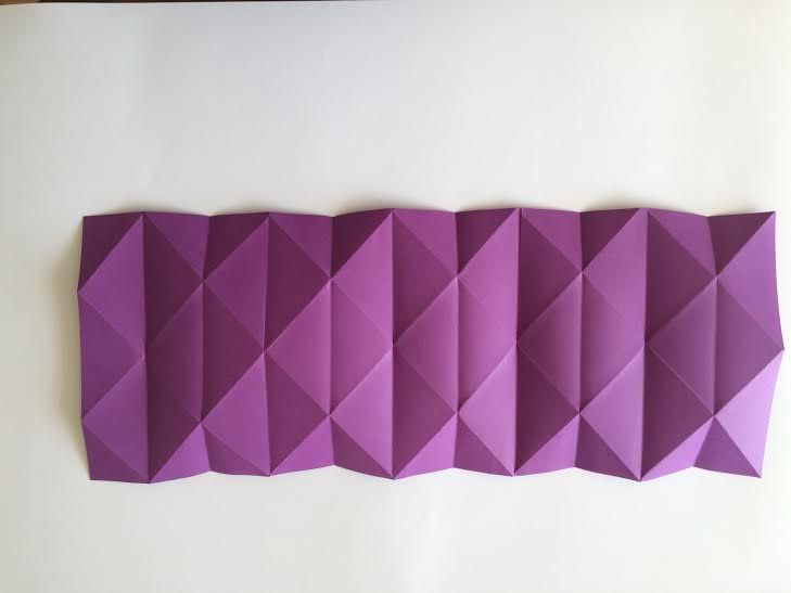 3. Tee kartonkiin vinotaitokset ensin toiseen ja sitten toiseen suuntaan. Kartonki näyttää taitoksiltaan nyt samalta kuin yllä olevassa kuvassa.