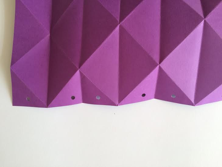 4. Tee toiseen pitkistä sivuista rei’ittimellä reikä jokaiseen kolmioon tasaisin välein.