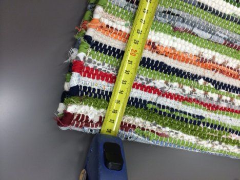 Lisäksi tarvitset vahvaa lankaa, paksun neulan ja kaksi sopivan kokoista sisätyynyä. Valmiin räsymattotyynyn koko on 39 x 60 senttiä.