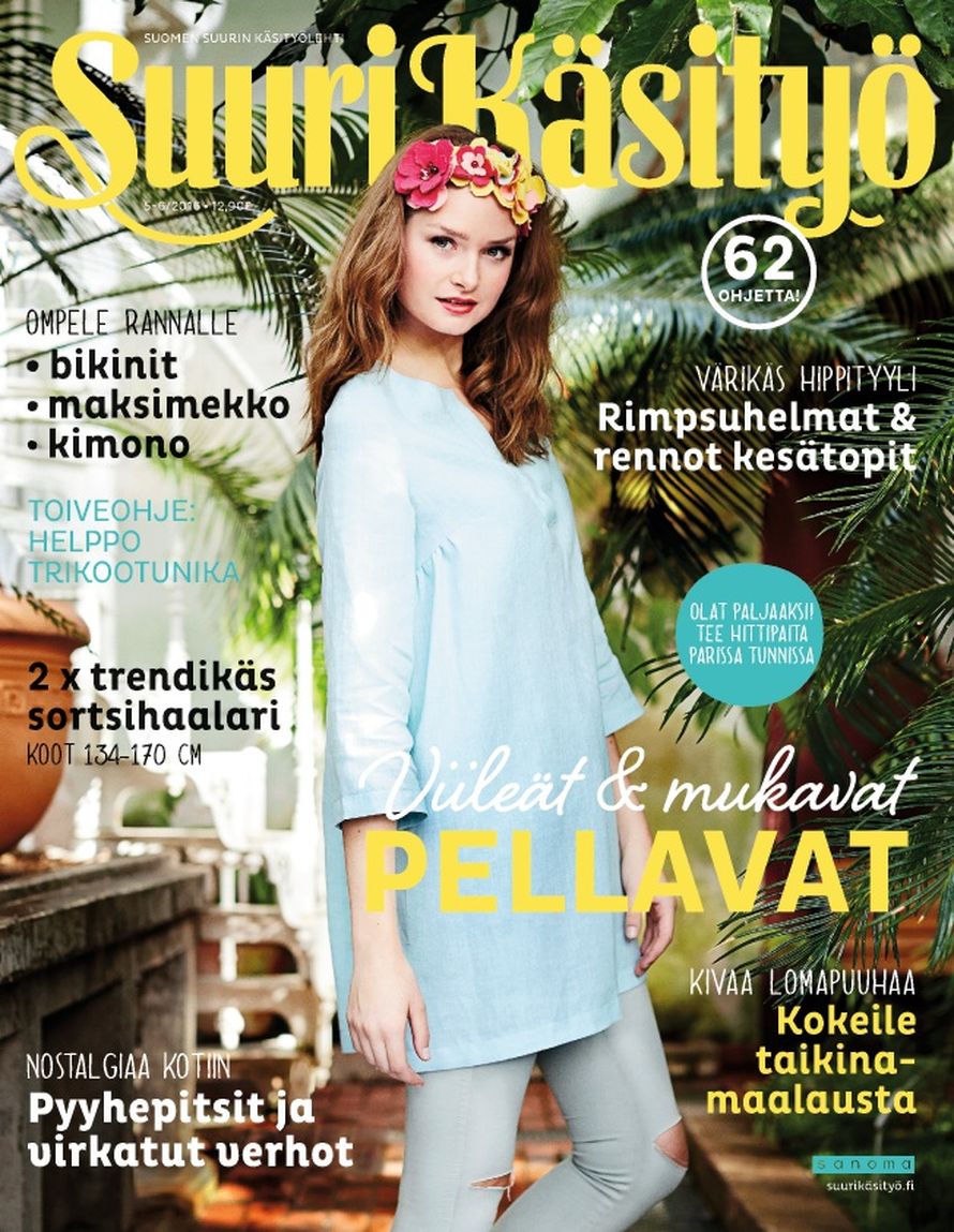 Tee itse Toukokuun 2016 Suuri Käsityö -lehden mallit Suuri Käsityö 10.5.2016 klo 14:26 Toukokuussa ommellaan helleasuja rannalle ja neulotaan ja virkataan pitsejä. Tilaa Suuri Käsityö Suuri Käsityö SK mallistot Tilaa Lue digilehtenä