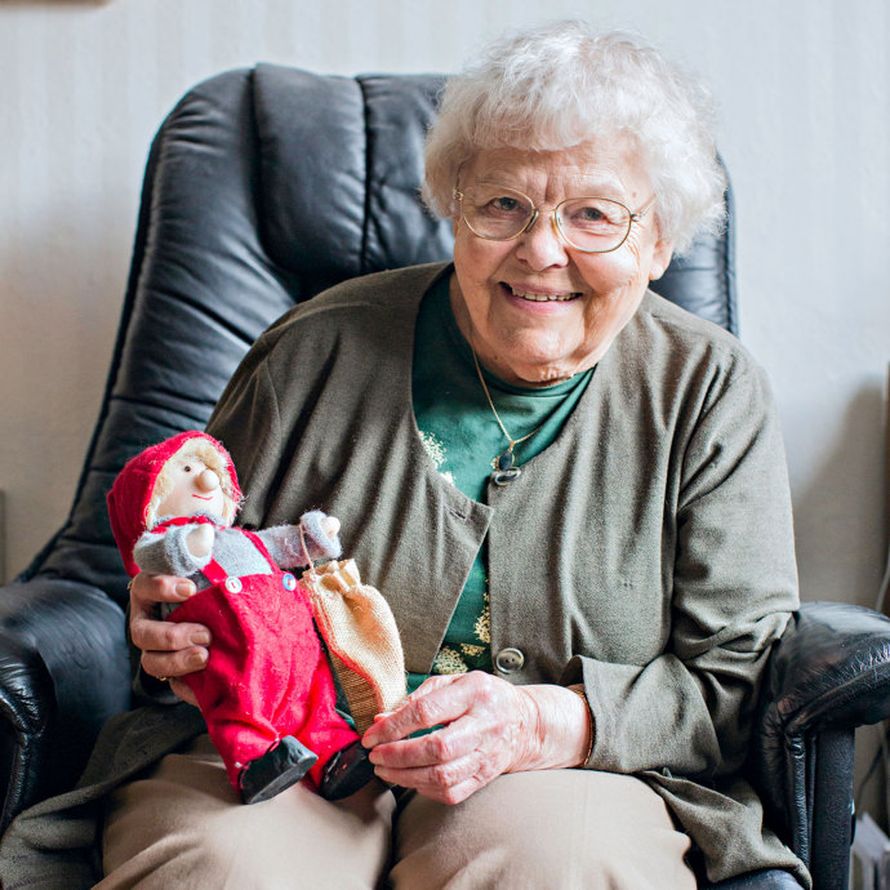 Helsinkiläinen Marjatta Salminen, 86, innostui käsitöistä neulottuaan lapaset serkulleen talvisotaan.