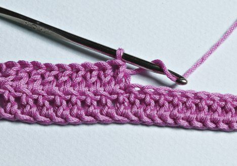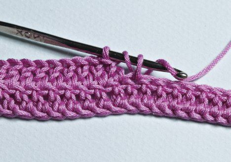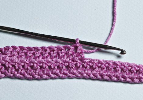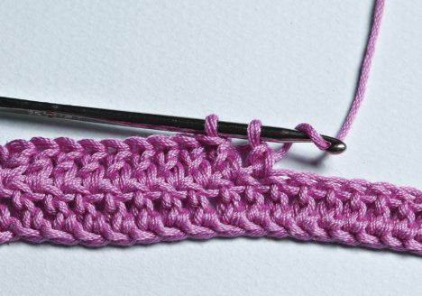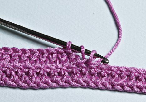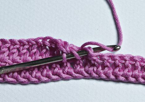2. Pistä koukku edellisen kerroksen silmukkaan.