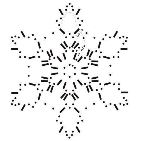 Tee tähti näin: Virkkaa haluamallasi värillä aloitusketjuksi 6 kjs ja sulje renkaaksi ps:lla. Virkkaa sitten 1.-3. krs:t piirroksen mukaan suljettuna virkkauksena. Katkaise lanka, vedä viimeisen s:n läpi ja päätä hyvin.