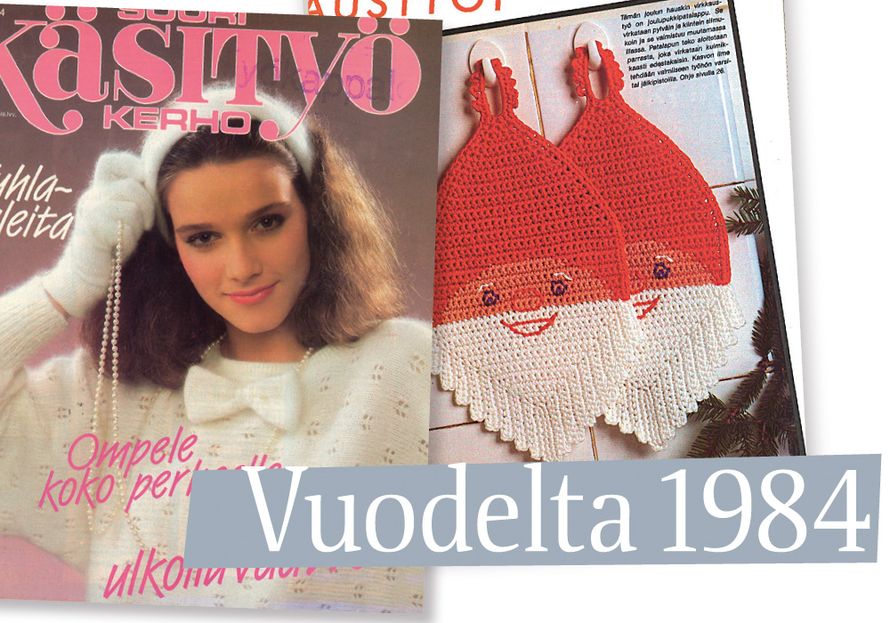 TARVIKKEET: Punaista, valkoista ja roosaa puuvillalankaa kutakin 50 g (esim. Novita virkkauslankaa). Kirjomiseen vähän sinistä.