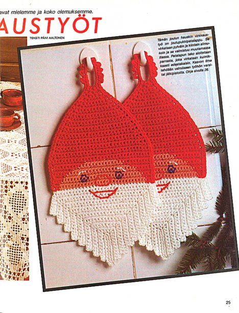 Langoista tulee kaksi pannulappua. Virkkuukoukku 3,5 mm.