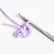1. krs: Virkkaa lenkkiin 1 kjs ja 8 ks. Kiristä lenkki tiiviiksi vetämällä langan päästä. Jatka spiraalina ja virkkaa langanpää samalla silmukoiden sisään.