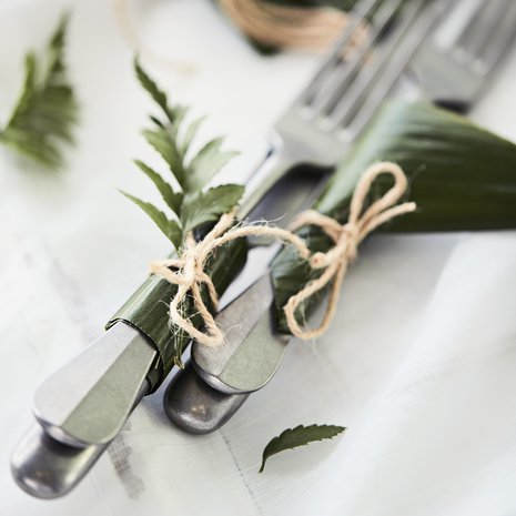 Valitse pöytäliinaksi niin suuri lakana, että se yltää reilusti maahan asti. Se on juhlavampi kuin puoliväliin päättyvä liina.