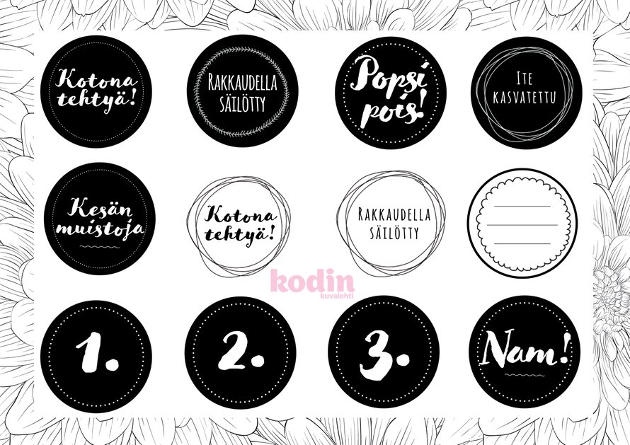 Säilöminen on hauskaa. Purnukat ja purkit näyttävät hyllyllä erityisen ihanilta, kun laitat niihin kauniit etiketit. Hillokellarin aarteilla ratkaiset myös kaikenlaiset lahja- ja tuliaispulmat. Printtaa tästä iloksesi hauskat etiketit!