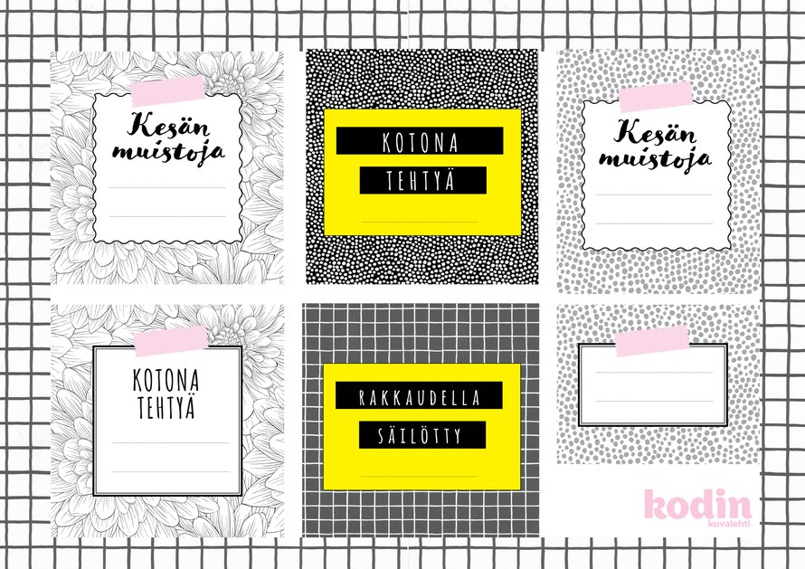 Etikettejä on kahdenlaisia. Kuvat näet alla ja printattavat PDF-tiedostot löydät niiden alta (mainoksen alla).