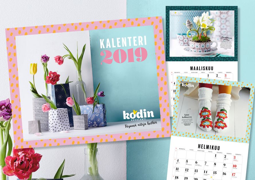 Kodin Kuvalehden tilaajat saavat tilaajalahjana kätevän ja kauniin seinäkalenterin vuodelle 2019. Kalenteri toimitetaan 13. joulukuuta ilmestyvän lehden numero 24 välissä.