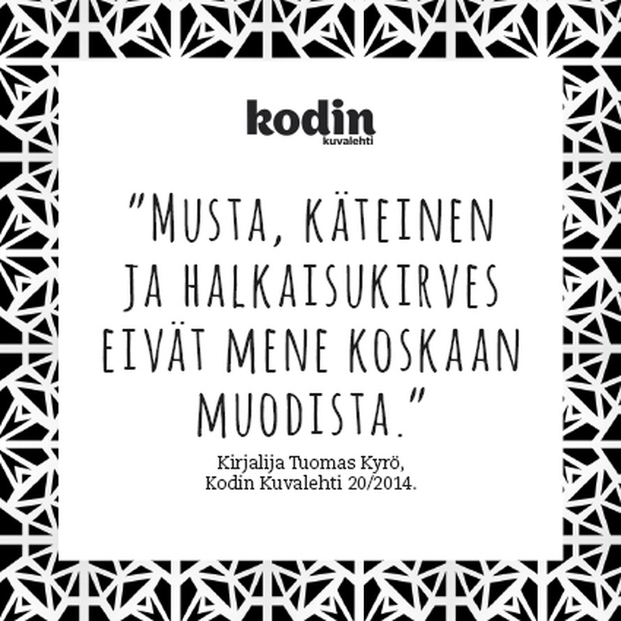 "Musta, käteinen ja halkaisukirves eivät mene koskaan muodista." Kirjailija Tuomas Kyrö, KK20/2014