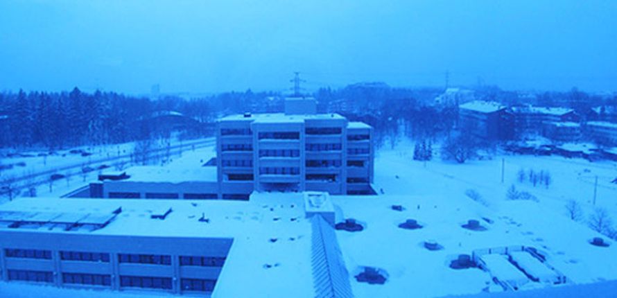 talvista maisemaa. Kollegamme Sakari otti työpöytänsä äärestä oheisen