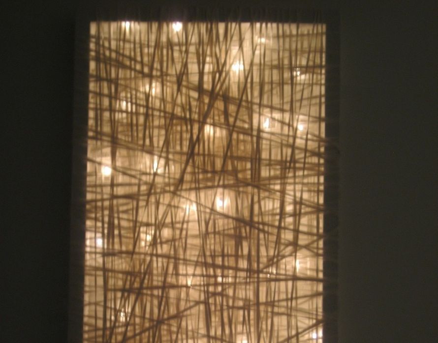 Taulu valmistettu valkoisesta paperinarusta, jossa led-valot sisällä.
