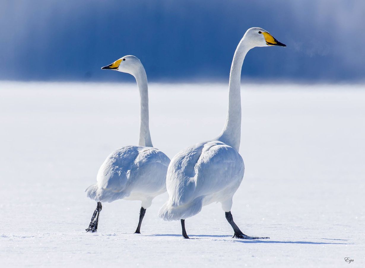 Ääni kuuluu jo kaukaa: laulujoutsenten torvet soivat.
