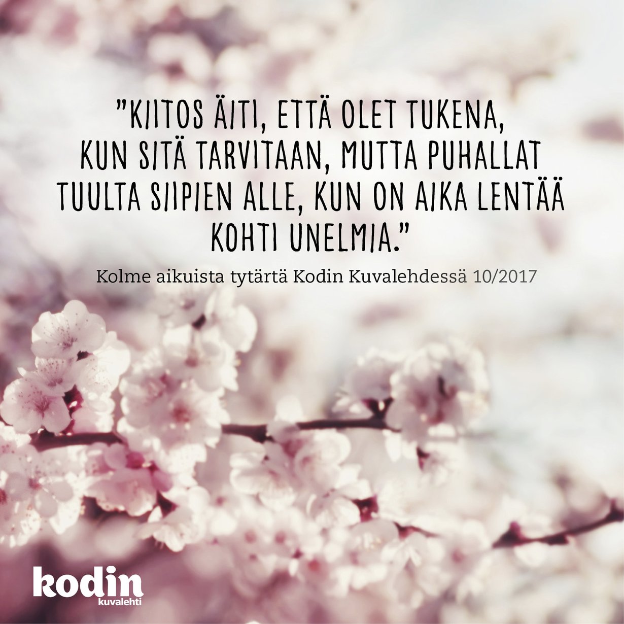 Onnea äidille! Kodin Kuvalehti kuva Istockphoto 14.5.2017 klo 8:01 Sisältö jatkuu mainoksen jälkeen Sisältö jatkuu mainoksen alla Tilaa Kodin Kuvalehti oivallus äitienpäivä hyvä mieli äitienpäivä Seuraa meitä Facebookissa FacebookTwitterWhatsApp Tykkää (12) Tallenna Tilaa Lue digilehtenä FacebookTwitterWhatsApp Tykkää (12) Tallenna Suosituimmat Kodin Kuvalehti Janne Puhakan Johanna-sisko toivoo, että pikkuveli ei unohtuisi: ”Haluan uskoa, että Jannen elämällä oli merkitys” Kodin Kuvalehti Janiina taisteli saadakseen apua tyttärelleen: ”Lapseni leimattiin ongelmanuoreksi” Kodin Kuvalehti Adhd-diagnoosin saanut Katri Manninen, 50: ”Otan lääkkeet joka päivä, koska minulla on työ ja perhe” Kodin Kuvalehti Älä heitä pelargoneja pois syksyllä – näin ne säilyvät talven yli ensi kevääseen Kodin Kuvalehti Jenni rentoutuu miniatyyritaloja tehden: ”Kun keskityn näpräämiseen, vilkas arkimieleni tasaantuu” Soppa365 Anna hautua! Kylmän kauden parhaat lihapadat