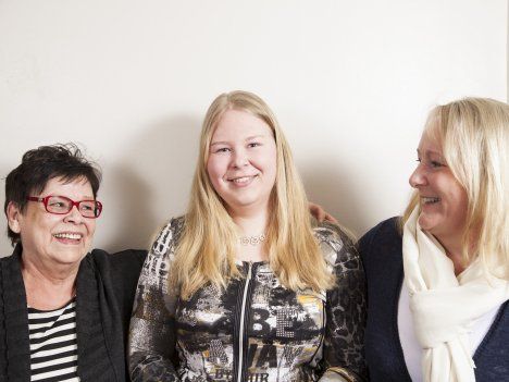 Taina Rahikainen, 29: "Olemme oppineet äidiltä hyviä käytöstapoja aina ruokapöytätavoista siihen, miten eri tilanteissa käyttäydytään. Äiti on opettanut myös nauramaan. Aina ei ole niin vakavaa!" (Kuvassa mukana myös Minna Muilu, 31, ja Aija Rahikainen, 25)