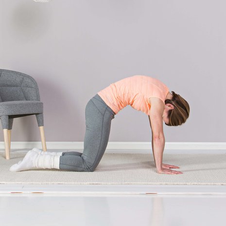 Vedä selinmakuulla napaa kevyesti kohti selkärankaa ja käännä leukaa rintaan. Nosta polvet syliin ja ota niistä halausote. Tunne koko selkäranka maata vasten ja rentoudu. Voit myös kevyesti hieroa ja liikutella alaselkää mattoa vasten.