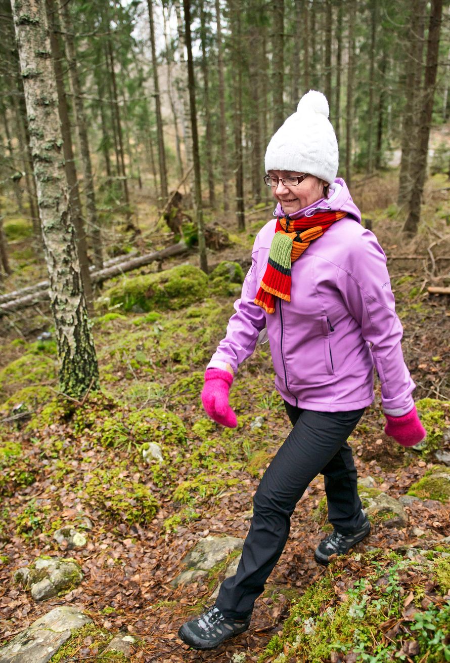 "Varsinkin näin pimeään aikaan olo on nuutunut ja kävelystä saa uutta virtaa. Käyn kävelyllä 4–5 kertaa viikossa. Huomaan, miten keuhkot avautuvat ja hapensaanti paranee. Veri lähtee virtaamaan, kun lihakset tekevät töitä. Piristävä vaikutus tuntuu pitkään kävelyn jälkeen.
