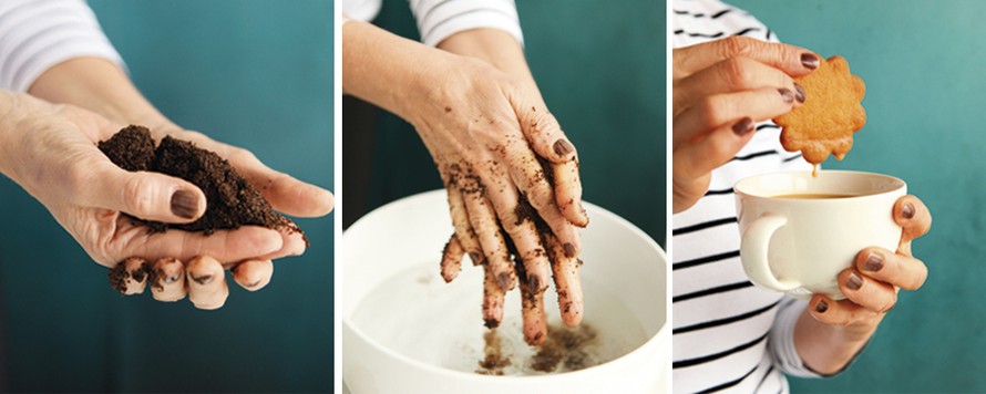 Kahvikissan käsien hoitovinkki makoisien aamukahvien jälkeen. Saat ilmaisen kuorinnan ja porotkin tulevat uusiokäyttöön.