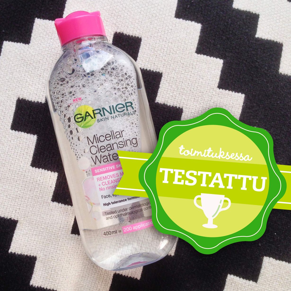 Garnierin Micellar-puhdistusvesi yllättää tehokkuudellaan. Tätä kannattaa kokeilla, jos meikinpoisto laiskottaa.