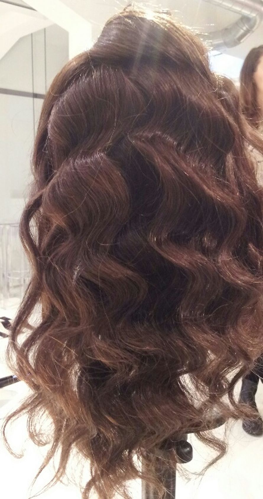 Minulle työnnettiin muotoilurauta käteen ja seuraavat viisi minuuttia keskityin kääntämään rautaa, kuten neuvottiin....aloita tyvestä ja käännä rautaa 180 astetta sisäänpäin ja ulospäin vuoronperään liu'uttamalla rautaa kohti latvaa. Jatkoin liikettä vuoronperään ja kyllähän siitä ihan kelpo laineet syntyivät.
