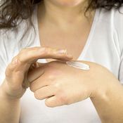 Levitä vaaleampaa lakkaa ja anna kuivua. Töpöttele tummempaa lakkaa karkeahkolla sienellä kynnen kärjestä kohti tyveä.