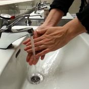 Kun pesen kädet, käytän haaleaa vettä ja saippuaa, joka ei kuivata ihoa. Kuivauksen jälkeen levitän käsiin kosteusvoidetta.