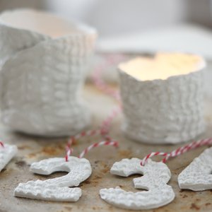 Soodataikinasta voit muotoilla myös lasinalusten (esim. kastehelmi), pitsiliinojen ja piparkakkumuottejen avulla kuusenkoristeita. Katso ohjeet kuusenkoristeisiin.