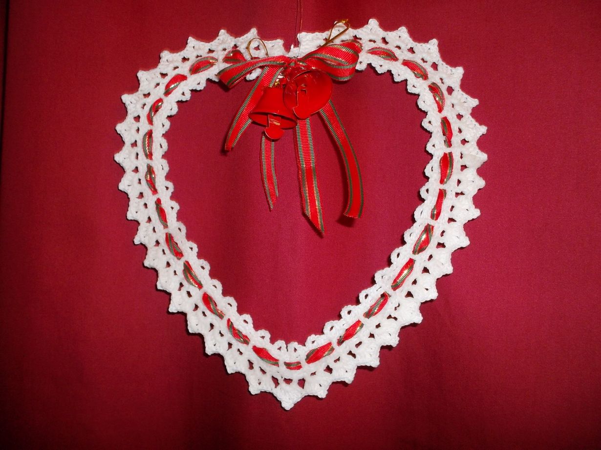 Suuri Käsityö -itsetehty ovikranssi Virkattu sydän-ovikranssi 3.12.2014 at 13:44 Virkattu ja kovetettu ovikranssi, koristeena nauhaa ja pienet joulukellot. Virkkailija