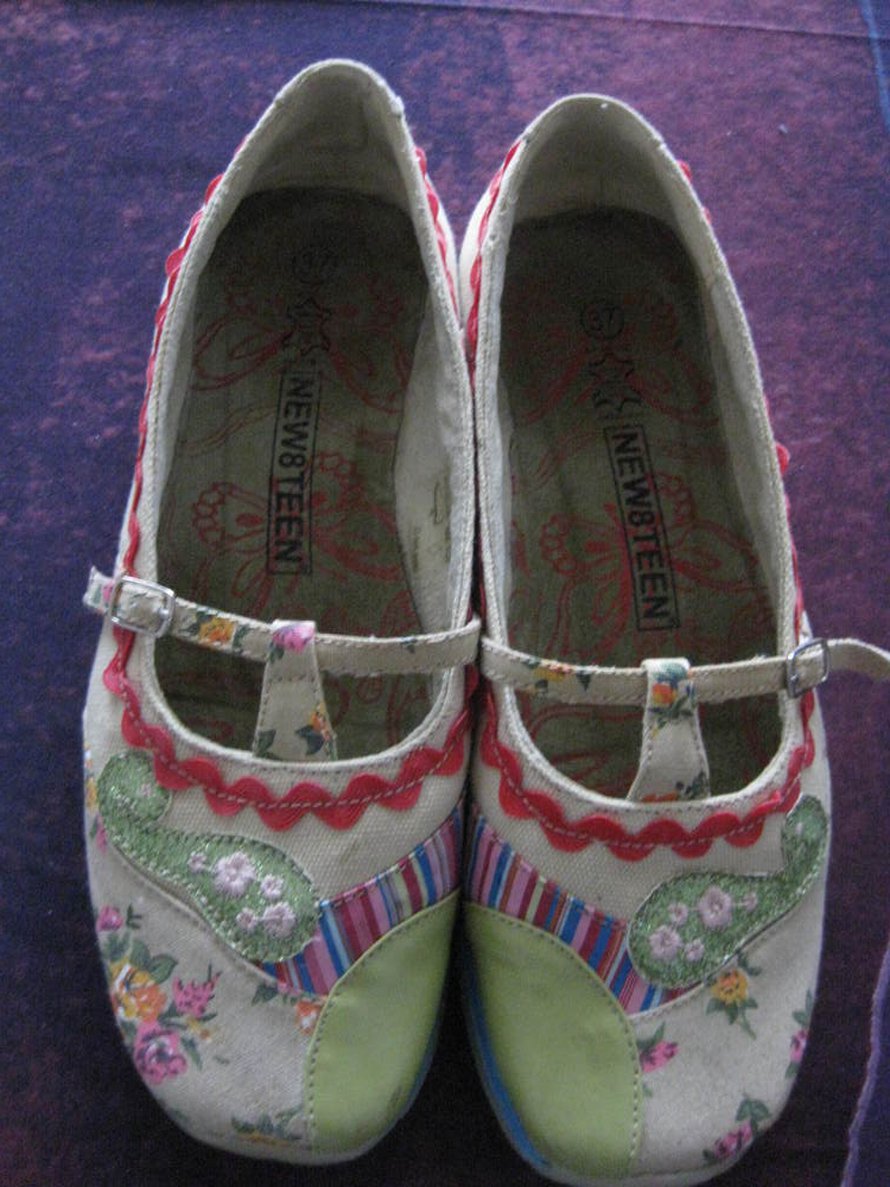 Löysin vuosia sitten Tallinnasta alesta kengät, joissa on tilkkuja ja hieman kiillettäkin.Ihastuin heti.