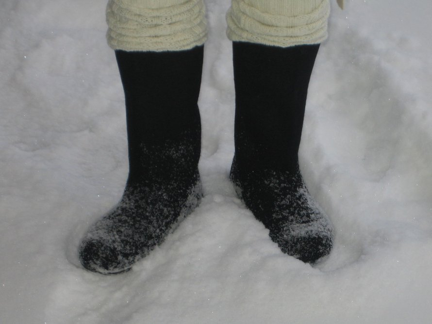 Näissä huopikkaissa on äitini jo 60-luvulla taivaltanut talvella tansseihin ja nyt ne lämmittävät minun viluvarpaitani talvipakkasilla. Pari villasukkaa alle niin tarkenee kylmimmälläkin kelillä!