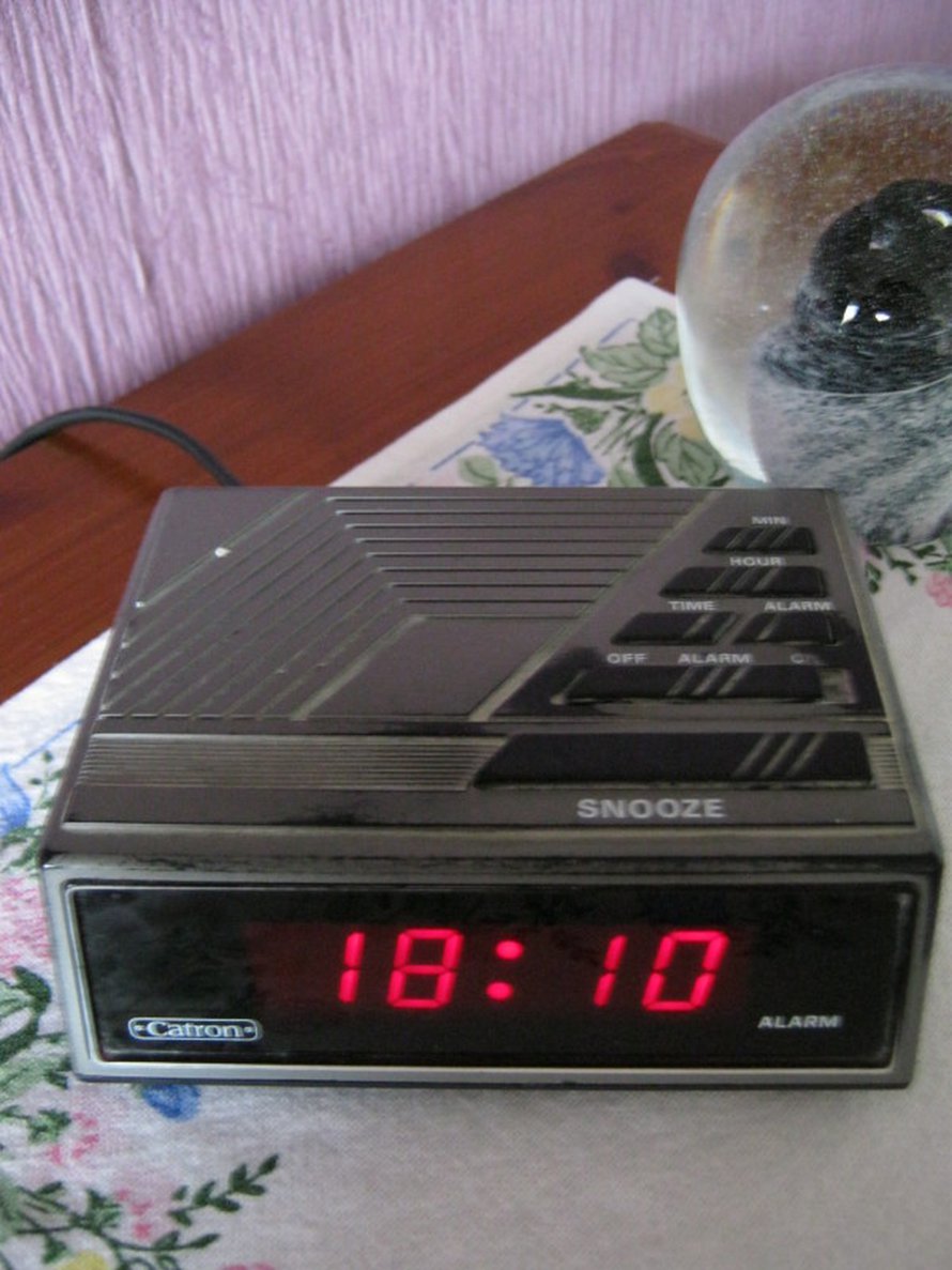Ruma, mutta tuttu ja turvallinen herätyskelloni on monta vuotta vanha. Sen näkee jo kulumistakin. Ostin sen joskus halvalla postimyynnistä. Kello herättää kuuluvasti ja ääni kuuluu varmasti naapuriinkin.