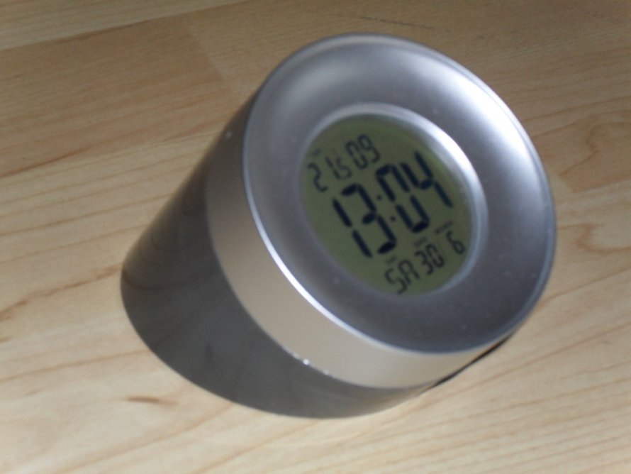 Mieheni täytti toiveeni herätyskellosta ostamalla huumorimielellä tämän vaikeasti käytettävän digitaalihirviön. Vahingoniloinen nauru kellon käytön opettelusta loppui muutamiin ylimääräisiin sunnuntaiaamuherätyksiin.