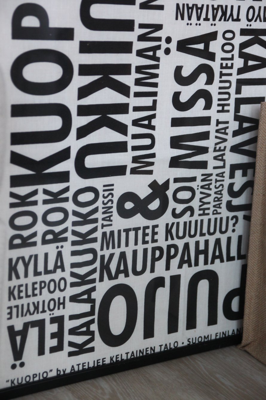 Löysin niin hienon (Ateljee Keltaisen Talon) Kuopio aiheisen keittiöpyyhkeen, että se piti laittaa kehyksiin. Kyllä nyt kelepoo!