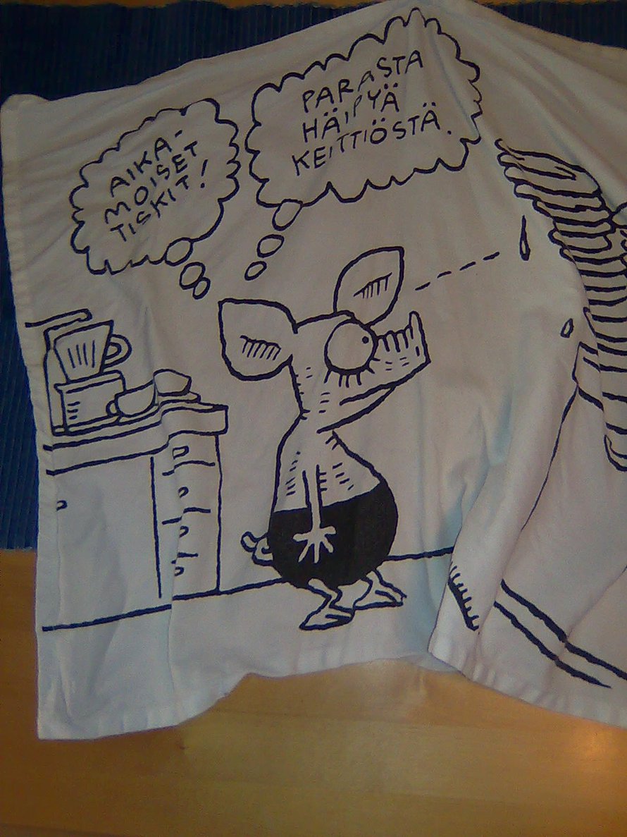 Ostin joskus Viivi ja Wagner -keittiöpyyhkeen, jossa on mielestäni mainio kommentti.