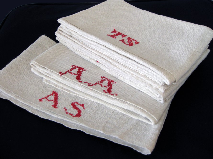 Äitini (85v) ja isoäitieni sotien jälkeen tekemät pellavapyyhkeet, joiden pellava on myös itsekasvatettu.