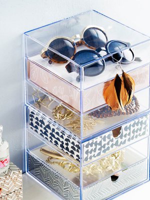 Koruni ovat (pääsääntöisesti) puisessa, mieheni tekemässä korurasiassa. Sormukset ja korvakorut ovat pienemmässä, samettipintaisessa rasiassa. Lisäksi kampauspöydän laatikosta löytyy muutama arvokkaampi koru, jotka säilytän alkuperäisissä rasioissa ja jotka eivät mahdu näihin lippaisiin. Kampauspöydällä on lasinen sormuspidike-/kulho, jossa on kulloinkin käytössä olevat korut. Joitakin rihkamakoruja roikkuu myös kampauspöydän peilissä ja kampauspöydän viereisellä seinällä...