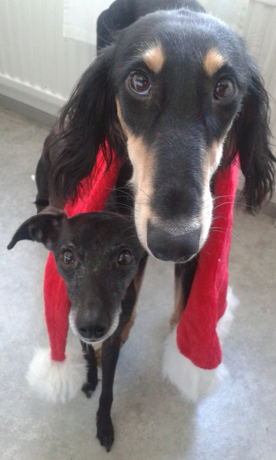 Ihanat vinttikoirani, sekarotuinen Kirppu 5v ja saluki Fiona 9kk.